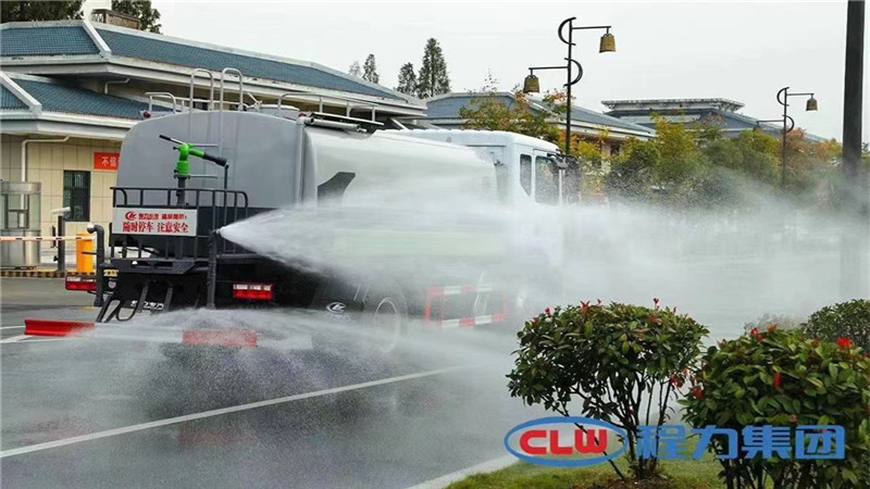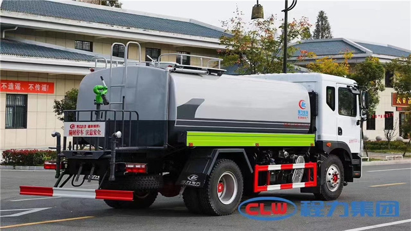 12方灑水車專用配置:罐體容積約12~14立方米,鋼板為4mm碳鋼Q235材質,前沖、后灑、側噴、后平臺帶綠化灑水炮,灑水炮可全方位旋轉,可連續調成直沖狀、大雨、小雨、毛毛雨;前封頭帶水位計,后平臺主管路帶1寸澆花接口,后爬梯,帶1個消防接頭,帶1個自流閥,1個過濾裝置。