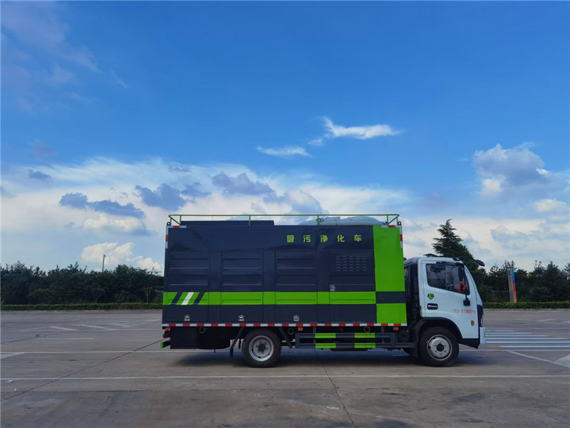 污水凈化車主要采用東風多利卡、大運奧普力、江淮康鈴、江淮駿鈴、江鈴順達、重汽豪沃、東風天錦,東風專底等國六底盤改裝而成,裝有發電機組、高壓清洗泵和卷盤、污水分離箱、疊螺脫水機等設備。可將化糞池的污物抽入車中進行渣水分離,由脫水系統將糞渣凝結脫水,從而排出清水,并將糞便壓榨成餅狀當有機肥使用。這種車輛可以同時抽排并進行污水凈化,效率遠遠高于清洗吸污車。
