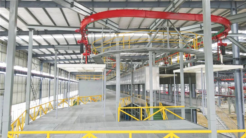 程力汽車“這條電泳線半自動程控作業(yè),上下件需人工輔助轉(zhuǎn)化,工件在槽體內(nèi)、烘箱內(nèi)輸送及運(yùn)行全部是自動化程控。”正在現(xiàn)場指導(dǎo)安裝的襄陽諾邦涂裝設(shè)備制造有限公司總工程師楊雷介紹。