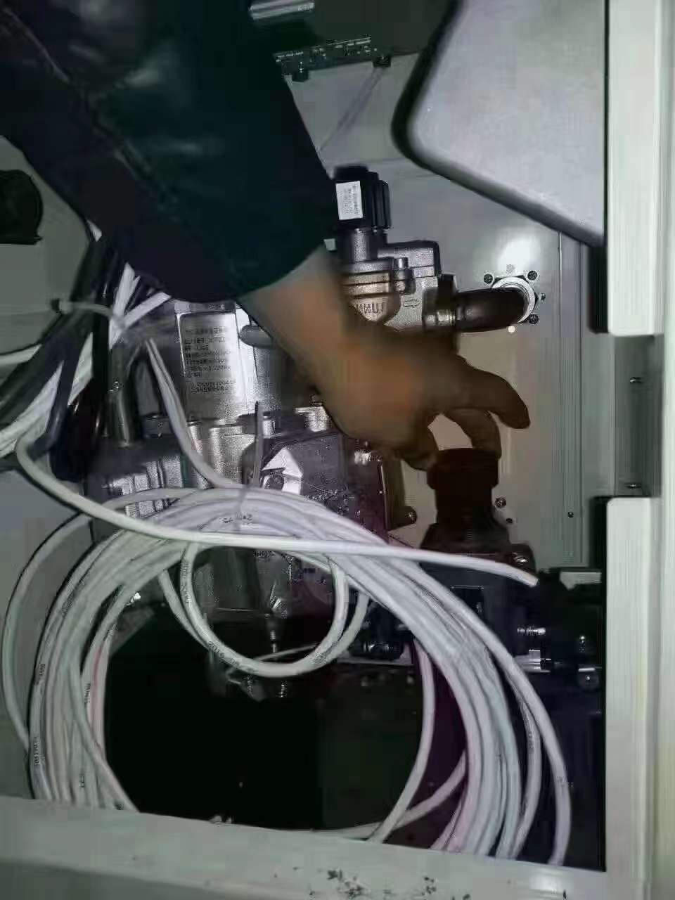4、第四張?照片:油機(jī)??門鑰用?匙打開,流溢?閥時(shí)針??旋轉(zhuǎn),調(diào)流大?量。