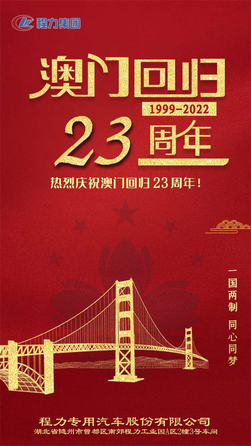 百年滄桑,風(fēng)雨洗禮,一朝回歸,萬(wàn)民歡慶,程力集團(tuán)熱烈祝賀澳門(mén)回歸23周年,祝福偉大祖國(guó)繁榮富強(qiáng)。