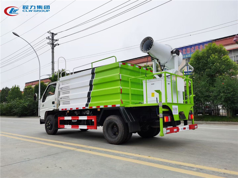東風D9多利卡60米抑塵車側面前沖、后灑、側噴、高炮、前置百葉窗門消音發電機倉[強],中置加大容量方型水箱,尾部加大加強平臺,可裝配50米-100米風送式車載霧炮機。
