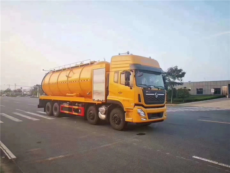 東風天龍前四后八清洗吸污車適合用于下水道內的淤積物的抽吸、裝運和排卸