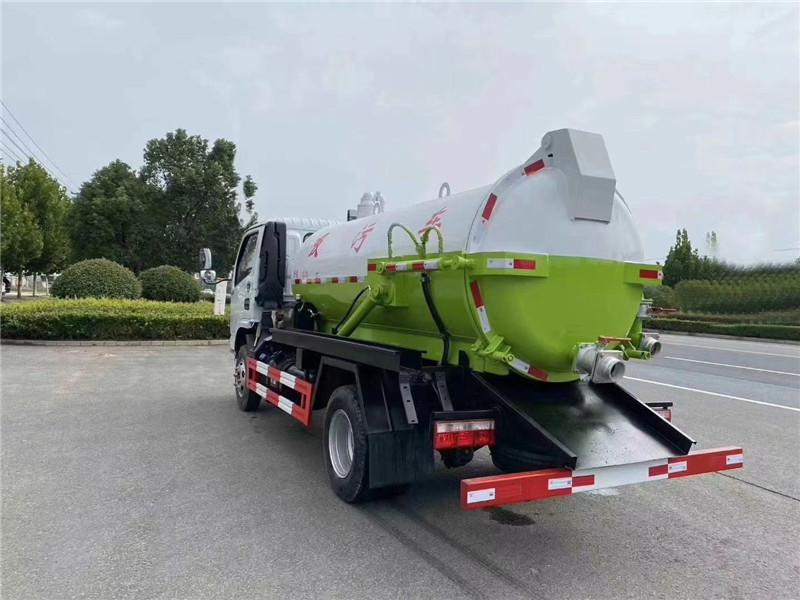 兩倉中間用封頭,通潔250流量高壓清洗泵,配60米高壓管。安裝山東美卓30方水環泵帶375馬力新副發。卷盤裝后封頭180度旋轉,后封頭液壓打開。后封頭上一個500水泥蓋放污,可液壓開啟,側面一個6寸強排閥,后封頭一個6寸出口,一個6寸進口,罐內半鋪不銹鋼,駕駛室頂部警燈,罐體尾部箭頭燈,防溢流報警器,油水分離器,帶一個視污窗口。帶8米吸污管。其余廠內標配。