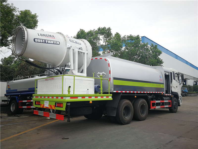 總結,這款東風天錦抑塵車前噴后灑,前裝有鴨形噴嘴或圓頭沖嘴,后面裝有圓柱開灑水噴嘴或蓮蓬頭噴嘴,后部有一工作平臺,裝配有高壓水炮。后部還可裝8個噴嘴(選裝)噴水器一般用于沖洗街道。