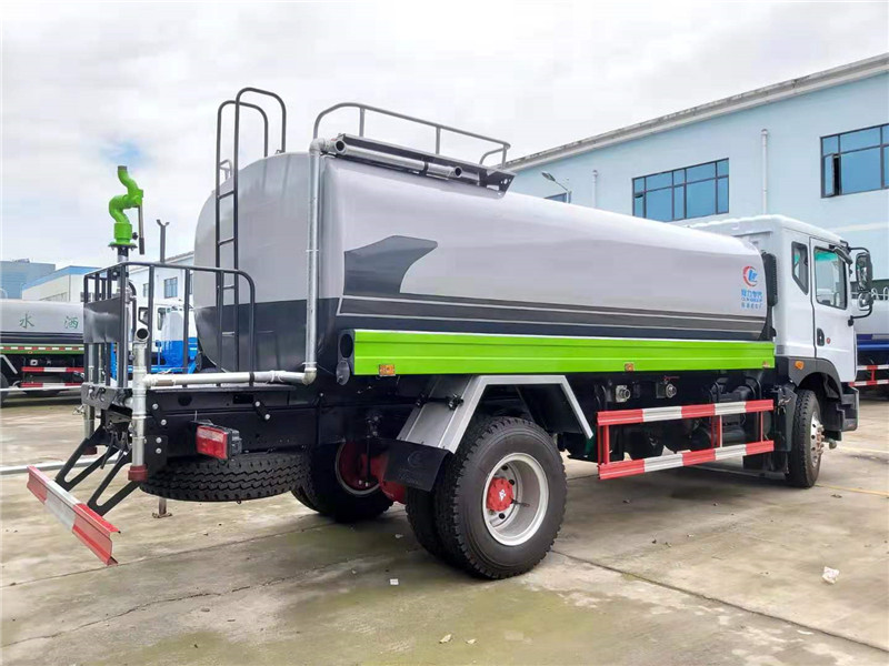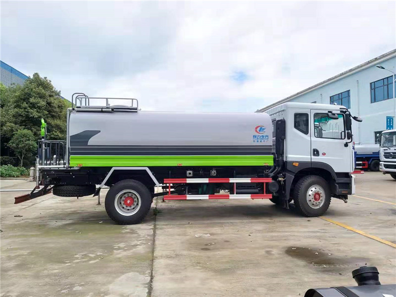 東風D17后八輪噴灑車罐內隔板具有防波作用,以減低汽車行駛時罐體液體的沖擊。整車帶一個專用灑水泵(垂直最大吸程6米),灑水寬度14米,射程28米。多功能灑水車配備2個前沖(噴)(能將路面泥巴、塵土、垃圾沖干凈);2個后灑(能均勻地將水灑在路面,一次灑水寬度14米)、2個側噴(花灑)(能均勻地將路旁綠化帶澆灌)、帶1個后工作平臺,平臺上安裝1個綠化灑水高炮(灑水炮可全方位旋轉。