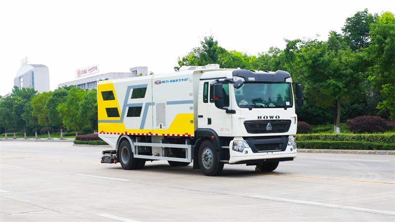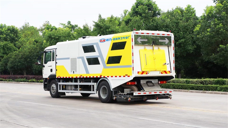 道路污染清除車滿足國六排放標準的濕式道路洗地車,配備重汽豪沃二類汽車底盤,上裝由箱體總成、動力系統、道路污染清除裝置、車架平臺、清掃裝置、噴灑系統、電氣系統、液壓系統等組成。結構采用“后置高壓清洗機構”單發動機取力裝置。