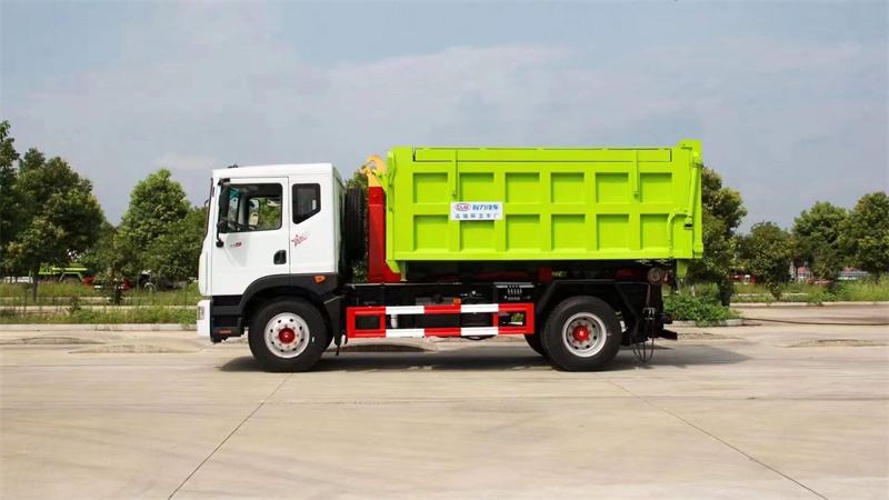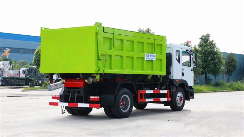 車廂可卸式垃圾車采用全封閉式垃圾箱,并可被吊裝和卸離底盤。具有結(jié)構(gòu)簡(jiǎn)單,操縱方便靈活,安全可靠,機(jī)械化程度高等特點(diǎn),因而使其具有較高的工作效率,同時(shí)可防止誤操作,避免事故發(fā)生,并可節(jié)省人力,減輕工作人員的勞動(dòng)強(qiáng)度。由于它的特殊結(jié)構(gòu)型式和工作方式,使其在裝車和運(yùn)輸過程中能有效地避免二次污染及噪聲污染,對(duì)于保護(hù)環(huán)境極為有利,是一種新型垃圾收集和運(yùn)輸車。