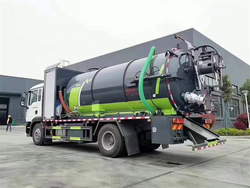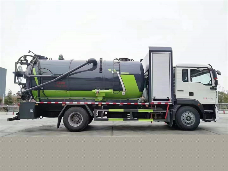 重汽TX系列清洗吸污車罐體容積約15方,8m碳鋼板材,清水約6方,清水箱兩側(cè)一邊一個(gè)消防栓進(jìn)水口,其余為吸污,罐頂兩個(gè)散水罐口(帶爬梯),兩倉球閥互通,罐頂一個(gè)互通。兩倉中間用封頭8mm,高壓泵接氣吹,通潔250流量高壓清洗泵,100米25高壓管,高壓泵進(jìn)水管加粗,卷盤裝后封頭180度旋轉(zhuǎn),卷盤帶液壓旋轉(zhuǎn),兩套偉業(yè)油泵。安裝30水環(huán)泵帶375馬力副發(fā),吸污管道帶排氣閥。后封頭液壓打開,里面用方鋼十字加固。后封頭上安裝一個(gè)600水泥蓋放污可液壓開啟,一個(gè)150不銹鋼球閥圓,一個(gè)100不銹鋼球閥圓,側(cè)面副駕尾部一個(gè)150寸不銹鋼偷排閥,后封頭一個(gè),罐內(nèi)鋪不銹鋼板,罐體尾部箭頭燈,帶一個(gè)視污窗口,后封頭一個(gè)視糞管,一個(gè)工具箱兩層。帶8米吸污管。其余廠內(nèi)標(biāo)配。