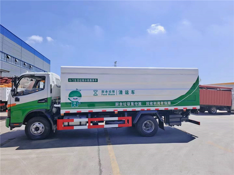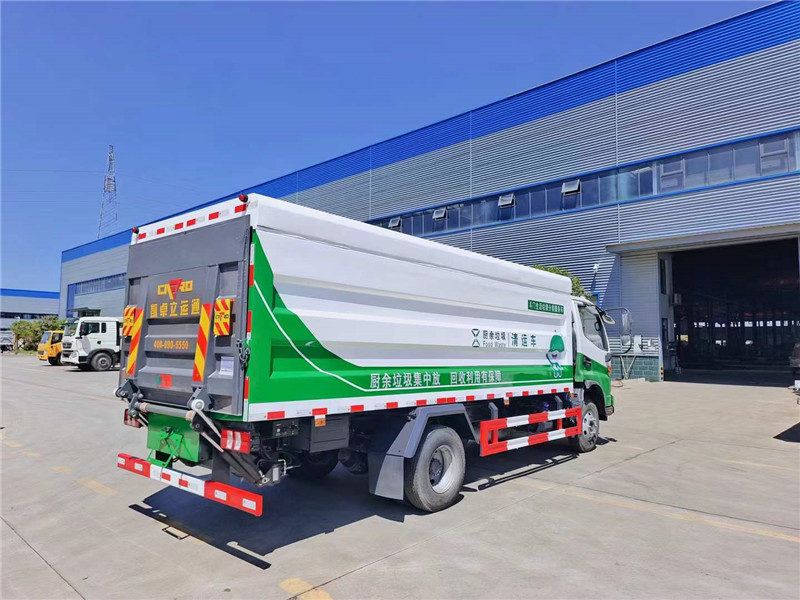 江淮駿鈴V7桶裝垃圾車:可裝240L垃圾桶21個,上蓋開啟為液壓開啟、后密封為凱卓立液壓圍板,落下后可與地面平齊角度為90度,(上升下降的角度可任意調整)、為防止環境污染后面裝有污水收集箱!
