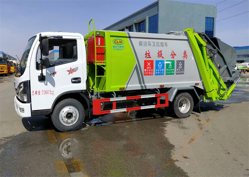 程力汽車東風多利卡七立方壓縮車,全柴136發動機,萬里揚六檔箱,700鋼絲胎,箱體采用邊四底四高強板制作,機器人自動化焊接工藝,皖液油泵,中梅多路閥,尾部三角斗帶二個240升垃圾桶翻轉機構。環衛保潔公司專用壓縮垃圾車。