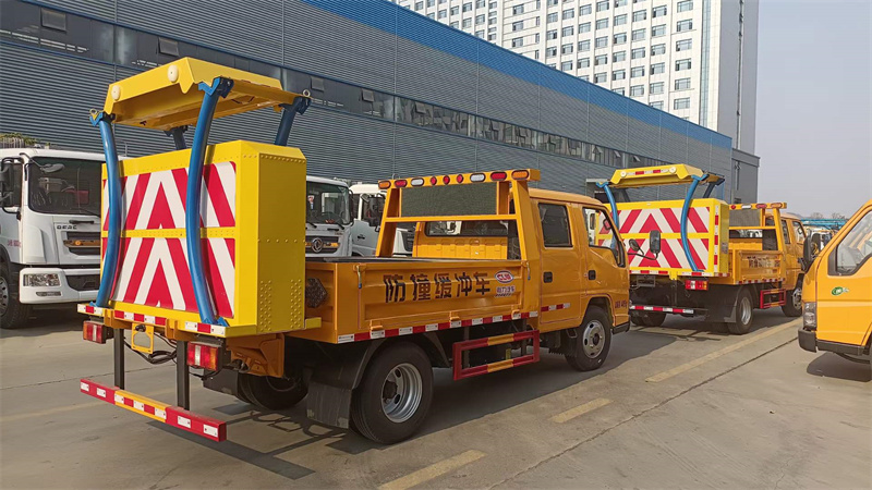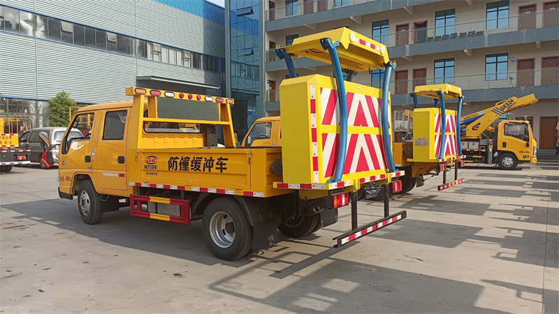 程力汽車集團廣東防撞車廠家電話18672220111李經理,該款為江鈴雙排座70K藍牌防撞緩沖車,CL5043TFZ6AJB型,軸距3360,700鋼絲胎,貨箱采用邊三底四,國標優質鋼板材,車架頂部裝有LED顯示屏,LED誘導燈/箭頭燈,配70K防撞緩沖墊。程力汽車防撞緩沖車——質量好,價格實惠,新車充足,購車首選程力防撞緩沖車。