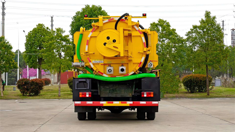 上裝配置:分體式外觀,罐體采用Q235碳鋼板制作,帶有視污窗,帶液壓舉升,后蓋為液壓開啟,吸污泵采用億豐SK-12噸真空吸污泵,帶8米吸污管一根,清水箱和污水箱互通,清水箱帶消防接頭,高壓泵170L帶汽吹水,配60米直徑19高壓管,配10個不同型號噴頭,嚴格按照公告制作(其余標配)。