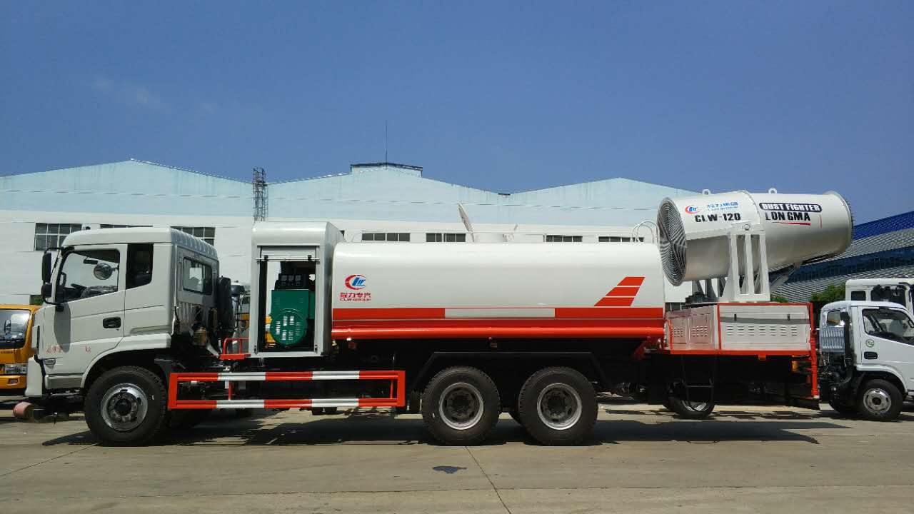 1、基本配置:水罐容積16立方米、常規(guī)最大配備CLW-120噴霧炮射程達90-100米、配套100KW汽油發(fā)電機、前沖后灑、側(cè)噴、平臺高炮、自流閥及消防接頭各1個、水管2根、8T以上高位花灑2個,標配億豐泵或金龍泵。