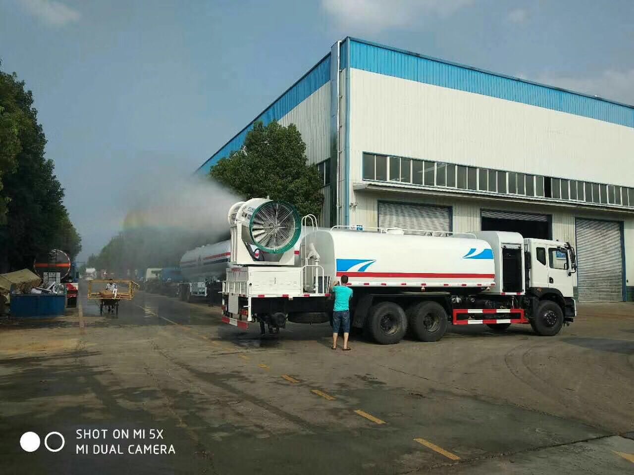 ★功能配置:帶前部沖洗路面噴灑裝置、后部扇形降塵噴灑裝置,兩側面噴灑裝置,帶后部工作平臺、平臺上安裝綠化灑水炮(炮噴射形狀可調),可調直沖狀、大雨、中雨、毛毛雨,可連續調節,最大射程可達28米,垂直吸程6.5米,揚程14米,另加裝高效率車載式風送噴霧機,噴藥炮霧化效果好,可遠程噴霧,水平射程達25米。帶消防接口、自流閥,可自吸自排。