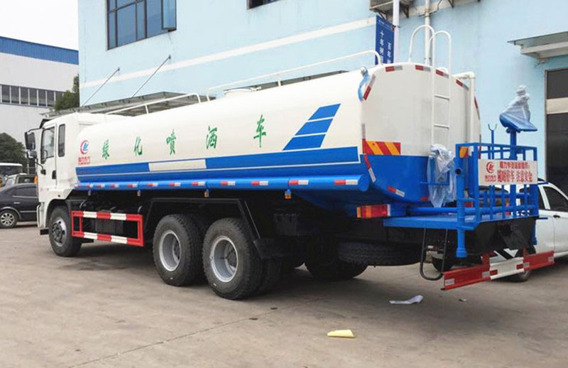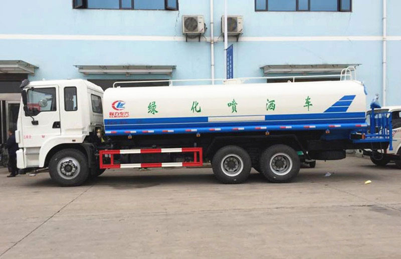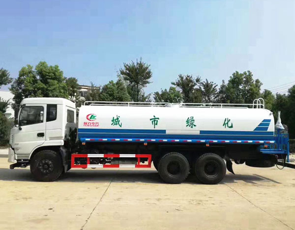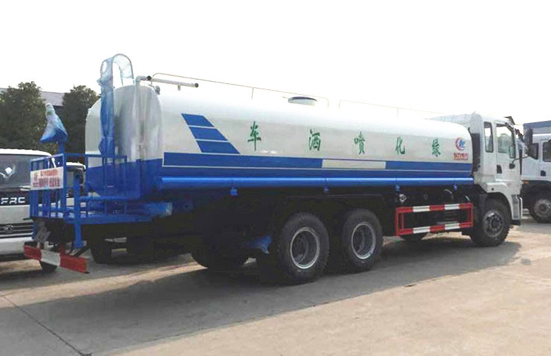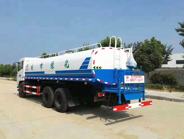 專用配置:罐體容積 18.7立方,罐體采用國標Q235碳鋼材質,罐體厚度4MM,前后封頭5MM加厚型,罐體內雙層隔板具有防波蕩作用,以減輕汽車行駛時罐內液體沖擊;灑水車整車及外形尺寸嚴格按照國家機動車公告制作而成;裝配大功率專用灑水泵,前沖、后灑、側噴、后平臺帶綠化灑水炮,灑水炮可全方位旋轉,可連續調成直沖狀、大雨、小雨、毛毛雨;配消防接口,自流閥,濾網,帶自吸自排功能。前封頭帶水位計,后平臺主管路帶1寸澆花接口,后爬梯,帶1個消防接頭,帶1個自流閥,1個過濾裝置,其余標配。1、可選裝后平臺帶霧炮機組用于噴霧降塵、農藥噴灑作業;2、可選裝前置電子灑水炮駕駛室操作;3、可選裝氣動球閥駕駛室操作。