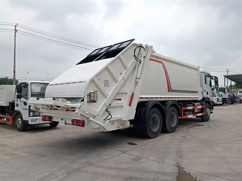 重汽汕德卡后雙橋壓縮式垃圾車:容積18-22立方。