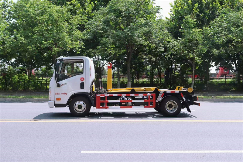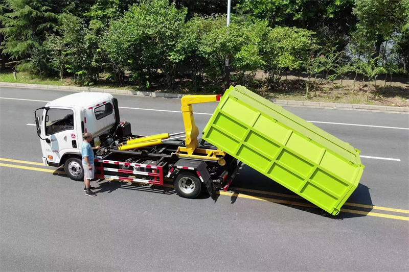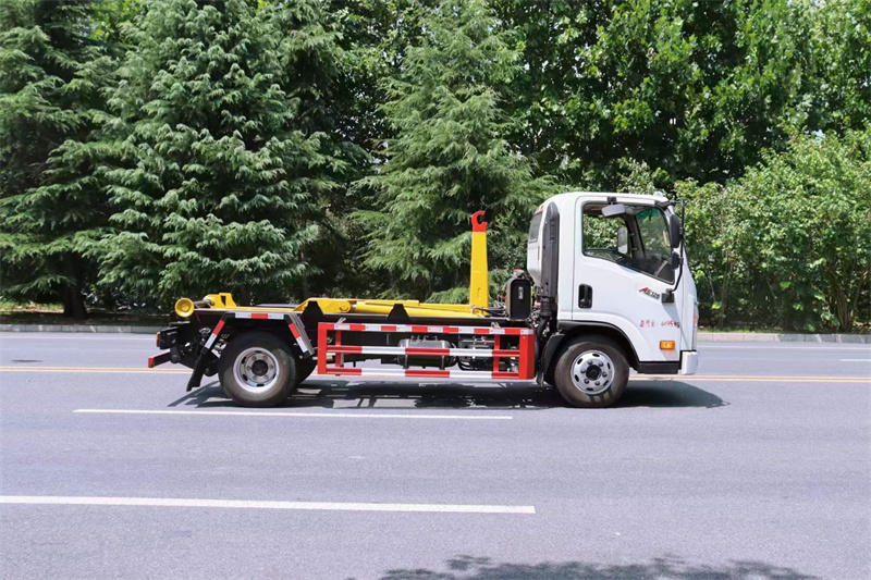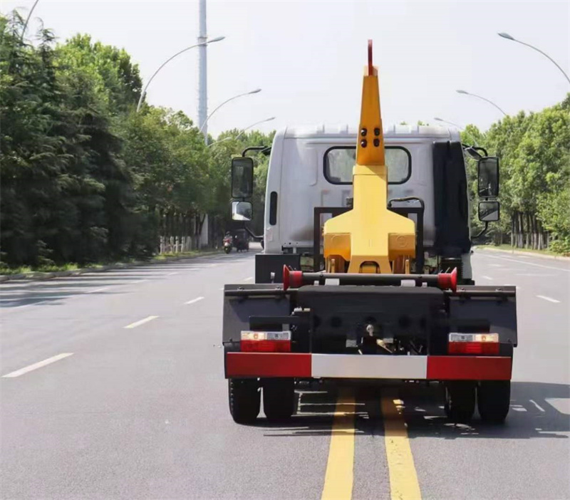 強度合金鋼一體式主勾臂,加強型副梁,鑄鋼尾托輪,手電一體液壓操控裝置,上裝最大提升能力6000KG,?液壓完成上箱+下箱+鎖緊+自卸等作業,實現一車配多箱的循環轉運。