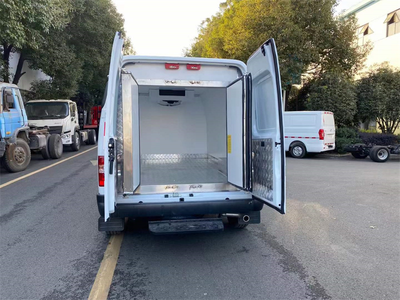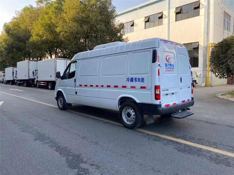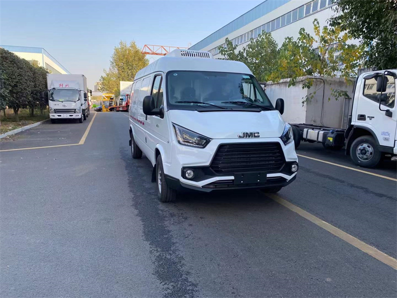 江鈴JX493ZLQ6發動機,115馬力柴油發動機,2.8L排量,國六排放,軸距3570mm,空調,方向助力,中控鎖,電動窗,遙控鑰匙,ABS,駕駛室準乘3人,總質量3510kg,整備質量2500kg,額定載質量815kg,輪胎規格225/65 R16C,廂體采用內外玻璃鋼材質制作,中間填充高密度保溫板,鋁花紋地板,不銹鋼門框鎖件,后雙開門,選裝進口或國產制冷機組。