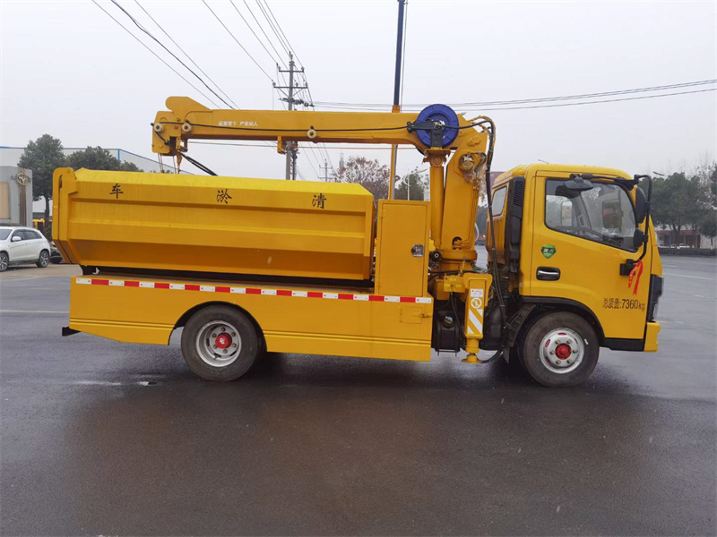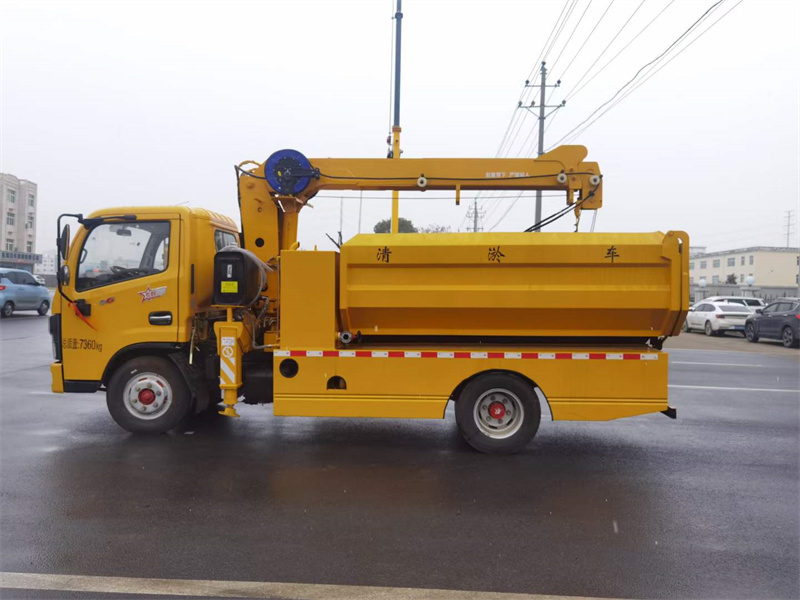 東風3308軸距清淤車,容積4.5立方,2.5噸2節臂吊機,主要抓取市政管井的污物,減少人工安全事故.