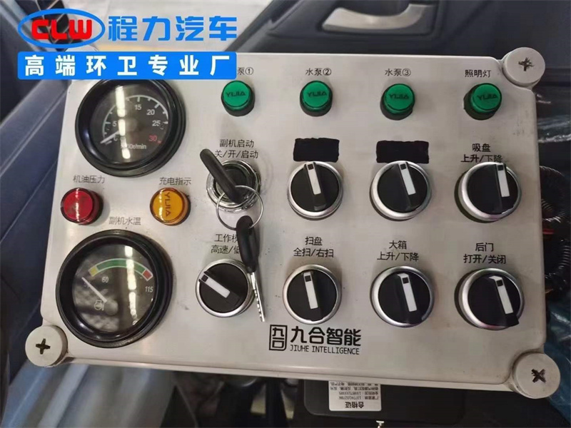 上配裝?置:中置4掃盤、三馬洋?達、玉柴57馬力發副?動機、施德耐?控開制?關、威搏森?樂電閥磁?組、森威?搏樂液壓缸油?及整套液壓系統、廈門南超動自?離合器、免維護心離?式風機、鋼碳?水箱,不銹鋼垃圾箱、上海電水子?泵、圾垃?箱舉自升?卸、部尾?LED箭頭燈、手動泵急應?系統。