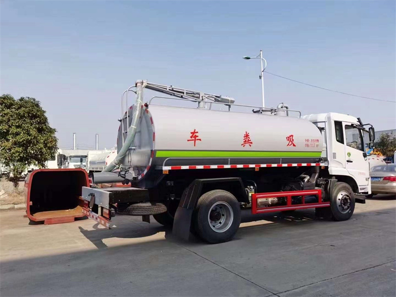 吸糞車罐體實際容積13方,帶視糞管,1個DN200碟閥自流口,洗手裝置,吸糞管7米長1根,一個吸糞車吊桿,一個六爪式罐口,8T雙真空吸糞泵,帶油水分離器,防溢閥,液位報警器。環衛新涂裝方案。