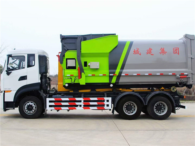 20方東風天龍后雙橋套臂垃圾車屬于鉤臂垃圾車中的一種。