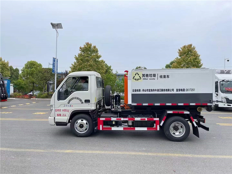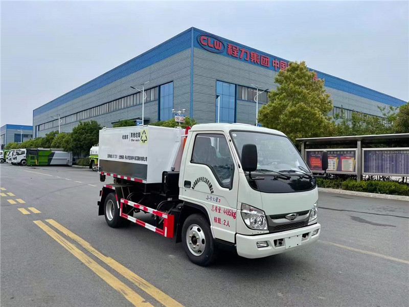 國六福田小卡之星勾臂垃圾車配套4立方生活垃圾箱(手動密封蓋、鎖緊裝置),小型勾臂垃圾車、藍牌勾臂垃圾車,藍牌垃圾收集車,小型垃圾收集車廠家。