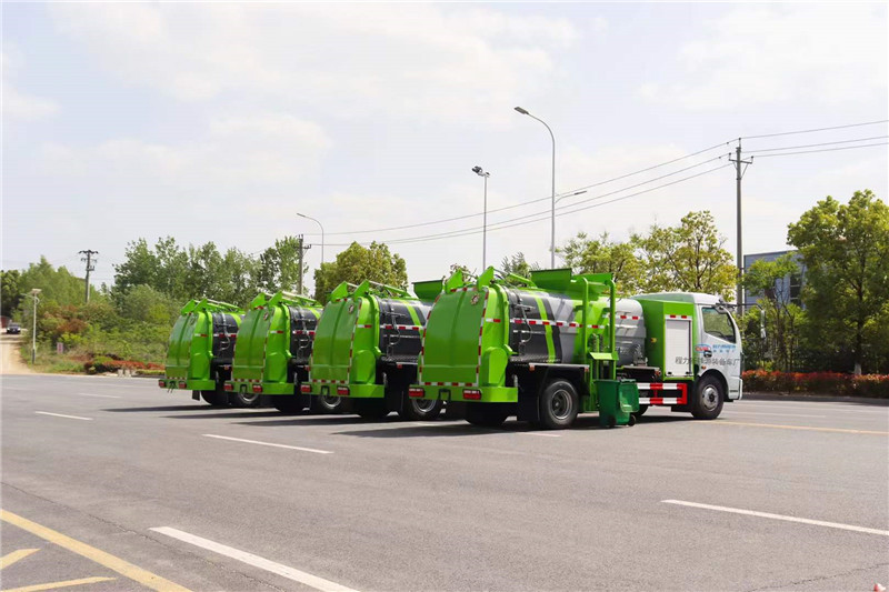 程力電動餐廚垃圾車底盤電池提供動力,永磁同步電機驅動,可根據需要實時調速,取力操作與底盤行駛系統(tǒng)無任何關聯(lián),用車體驗感極佳。優(yōu)質高強度 Q345 錳鋼制作無泄漏箱體,標配:1.弧形罐體,邊四底五/邊五底六。2.長源/皖液油泵,長源/中梅多路閥,知名液壓油缸。3.全推鏟卸料(不帶舉升功能),具有干濕分離功能。液壓后蓋,后蓋配防腐硅膠密封條。4.后門液壓鎖緊5.鏈條式提升機,可掛120/240升標準塑料垃圾桶。進料口蓋液壓開關。6.駕駛室內電控(提升機外部手動控制),后門鎖緊與后蓋開關的操作具有防誤操作。7.箱體帶清洗裝置(液壓馬達帶動高壓泵、帶水箱)。