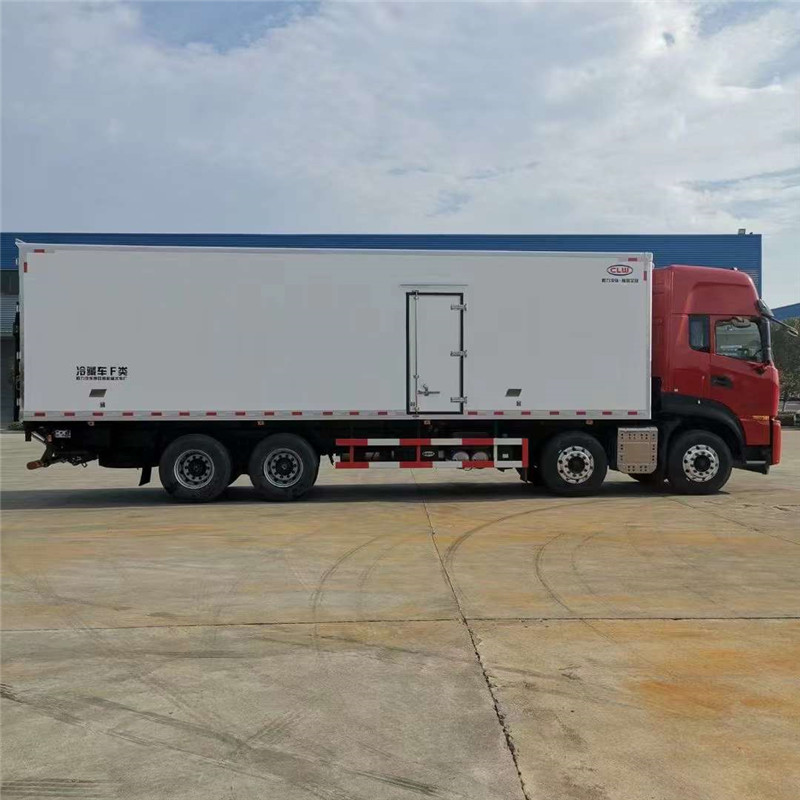 (2)廂板質材?:內外板壁?選用國質優內?2.2mm玻璃鋼(不吸光、隔熱性好、硬度強、抗氧化);中保間?溫層為XPS擠聚塑?笨板或者PUR聚酯氨?板;廂體度厚?8CM。地板采用鋁板紋花?,門邊條采用膠橡式宮迷?密封條。