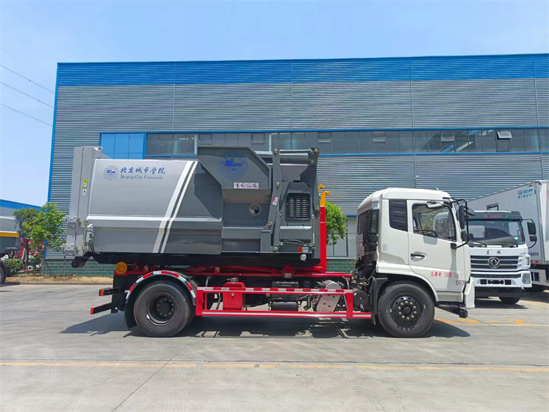 程力專汽廠家生產的東風天錦4700軸距康機210馬力鉤臂垃圾車配12方移動垃圾站,屬于廣東城市學院標配東風天錦鉤臂垃圾車,為學校環境美化起到重要的作用。