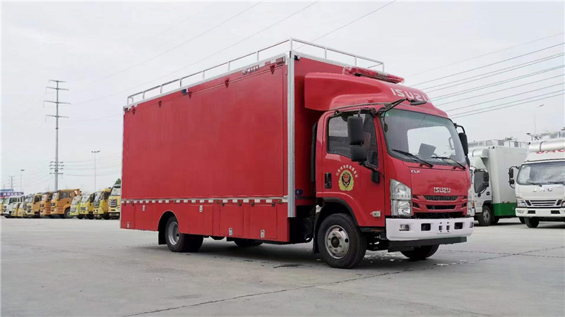 程力消防宣傳車底盤配置:五十鈴4HK1-TCG61發動機國六排放190馬力,可選裝205馬力五十鈴4HK1-TCG60發動機,五十鈴MLD六檔變速箱,帶空調,帶方向助力,前橋4噸,后橋7噸,帶ABS,斷氣剎,駕駛室可翻轉,標配235/75R17.5輪胎,可選裝825R20胎。