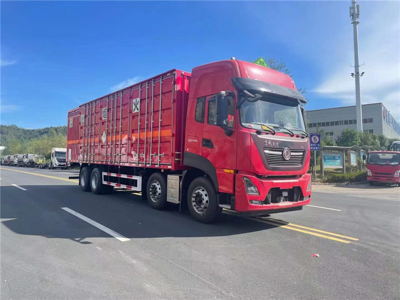 朱砂紅東風天龍前四后八危險品廂式運輸車,可出公告:1類爆破(9.99額載)2類氣體,3類液體,4類固體,8類腐蝕,9類雜項。